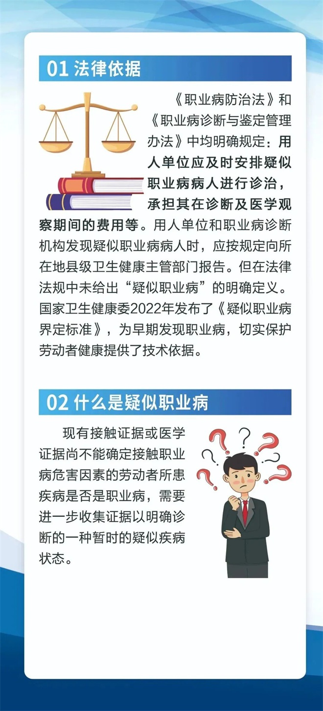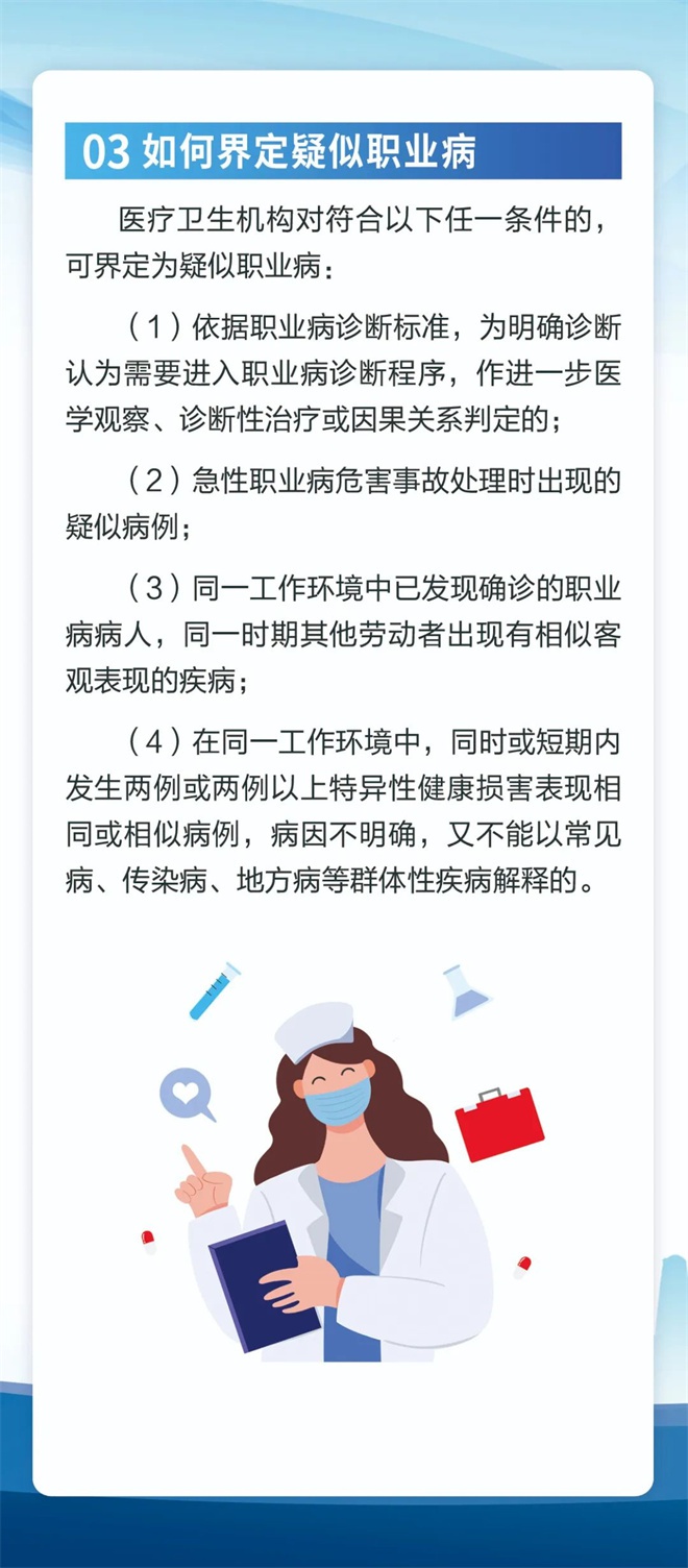 保護(hù)勞動(dòng)者健康,一起了解疑似職業(yè)病的概念定義、法律依據(jù)、界定標(biāo)準(zhǔn)、處理原則、在界定疑似職業(yè)病過程中的注意事項(xiàng),以及疑似職業(yè)病病人依法享有的權(quán)益。